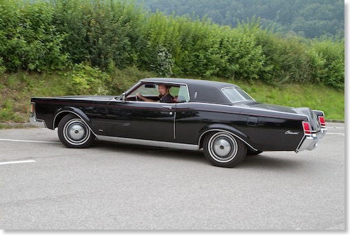 In the evening at the restaurant - Tom Witzel arrived with this awesome 1977 Town Car.