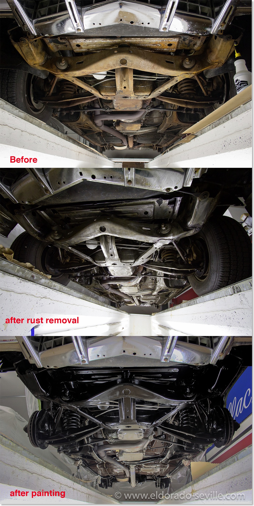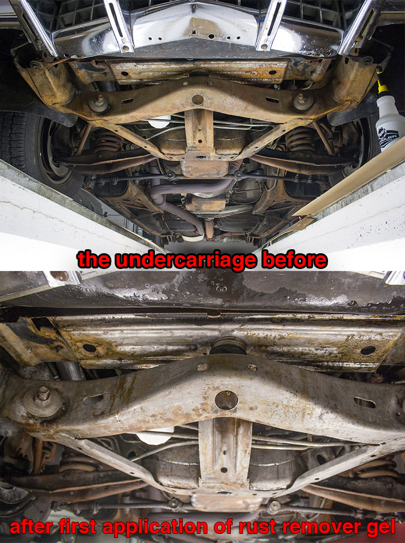REMOVING RUST FROM THE UNDERCARRIAGE WITH RUST REMOVING LIQUID
