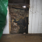 one of the weak spots in the wooden building on the side of the garage.
